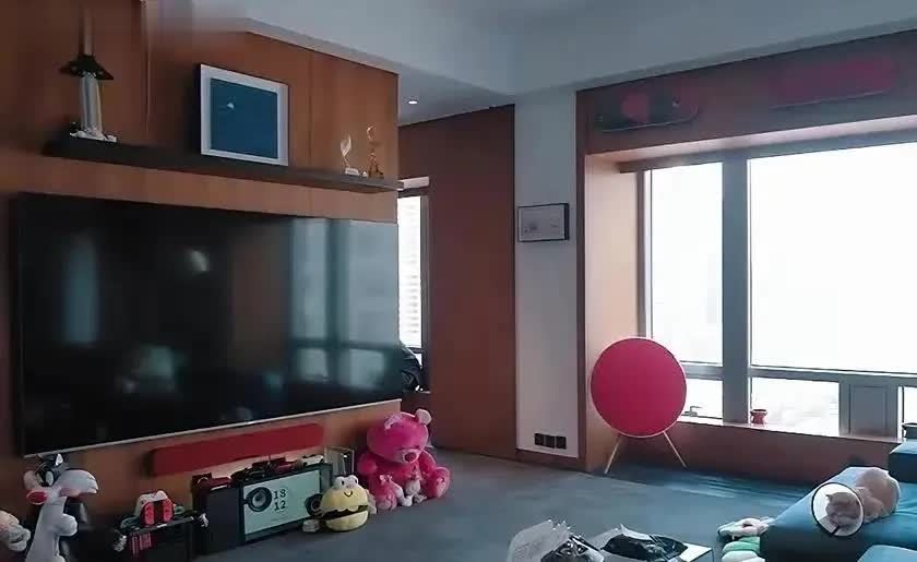 200平的大三居,客厅宽敞明亮,落地窗洒进阳光,屋内还摆放着可爱的玩偶展示柜,虽然没有正式餐桌,但丝毫不影响生活的惬意,毕竟外卖是她解决吃饭问题的常用方式。