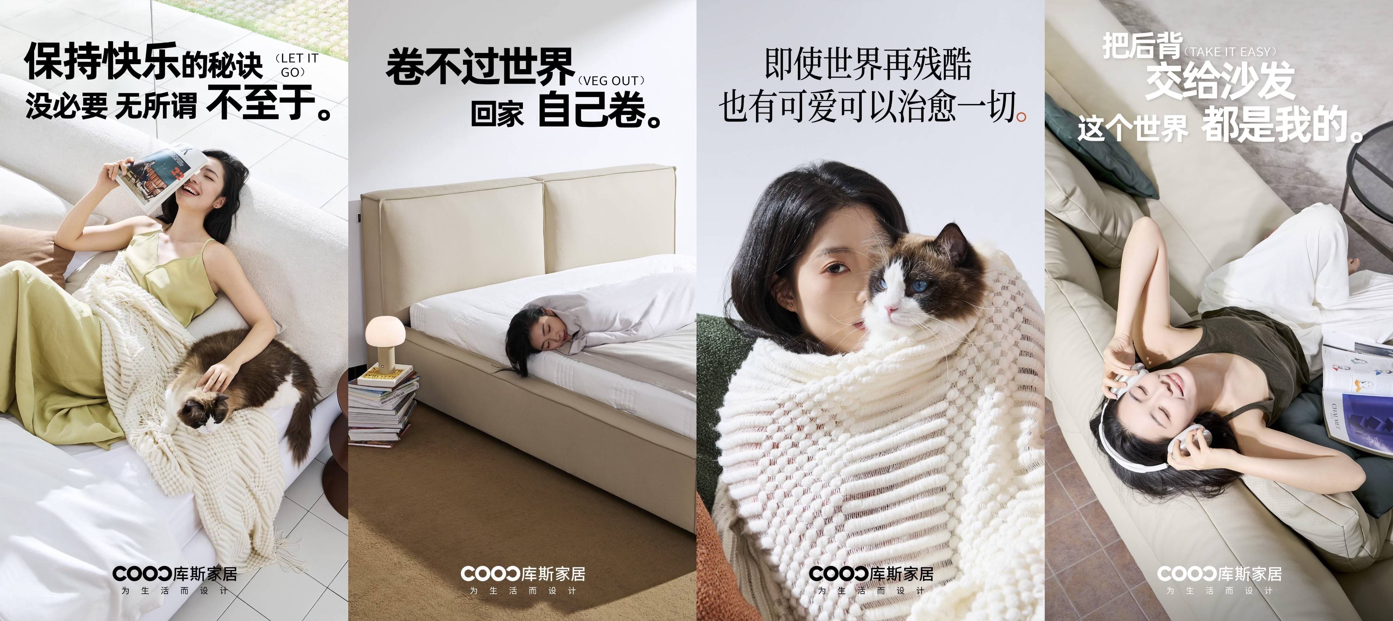 以用户身心松弛感为核心,行业首创松弛美学,从时尚、松弛、乐趣三重维度重构品牌DNA。焕新后的库斯家居,把产品作为生活质感的延伸,实现从功能满足到情绪共鸣。库斯家居鼓励用户不被标准化审美所束缚,自由听从内心的选择,将时尚作为一种生活态度;通过产品设计营造出自然、舒适、无压力的居家氛围,让家成为回归自我的舒适空间,倡导松弛的生活方式;还通过产品微创新,增加生活灵感,引导用户重拾生活乐趣。