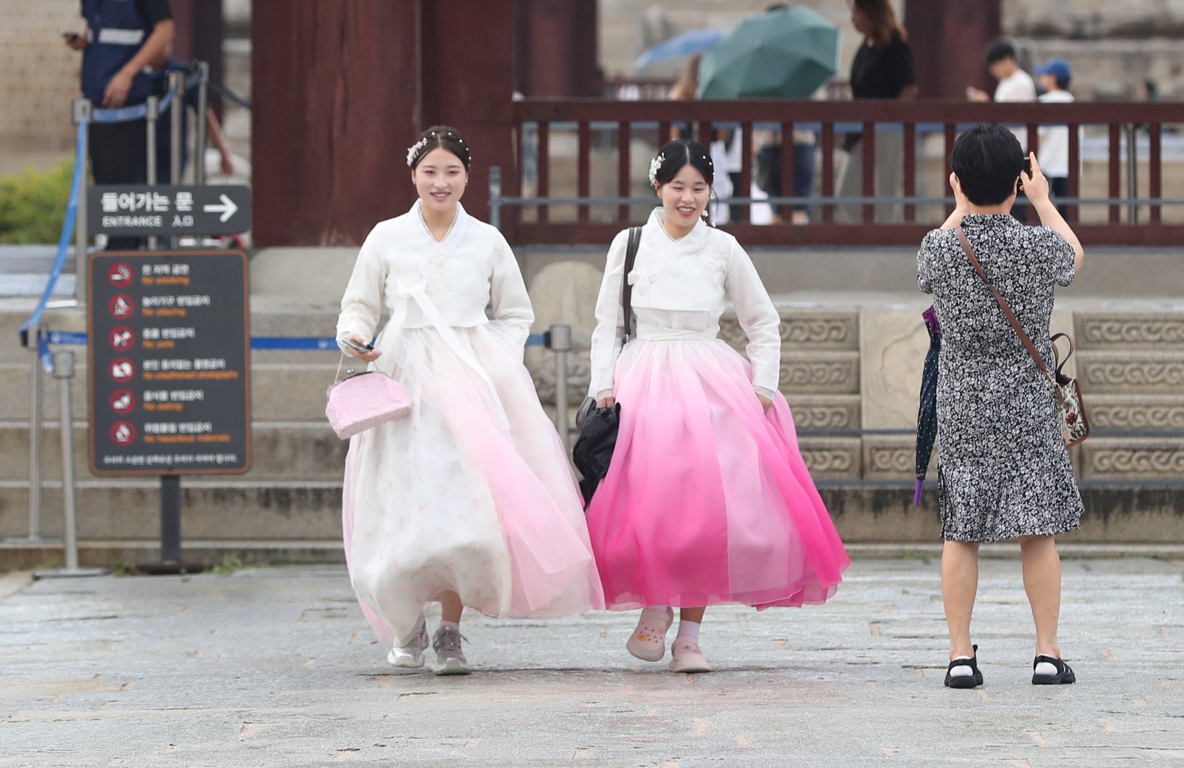 8月6日,游客在韩国首尔景福宫参观。新华社记者姚琪琳摄