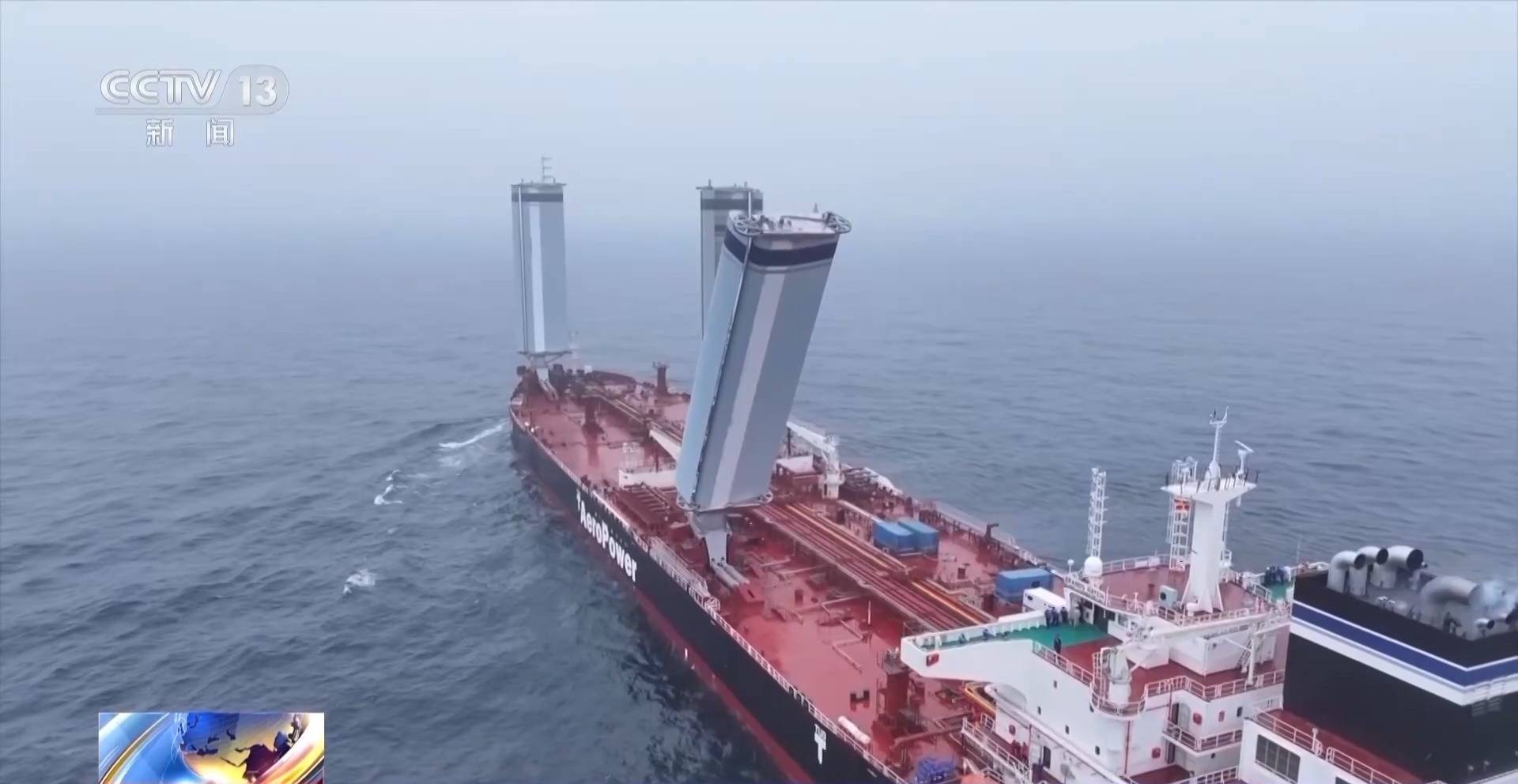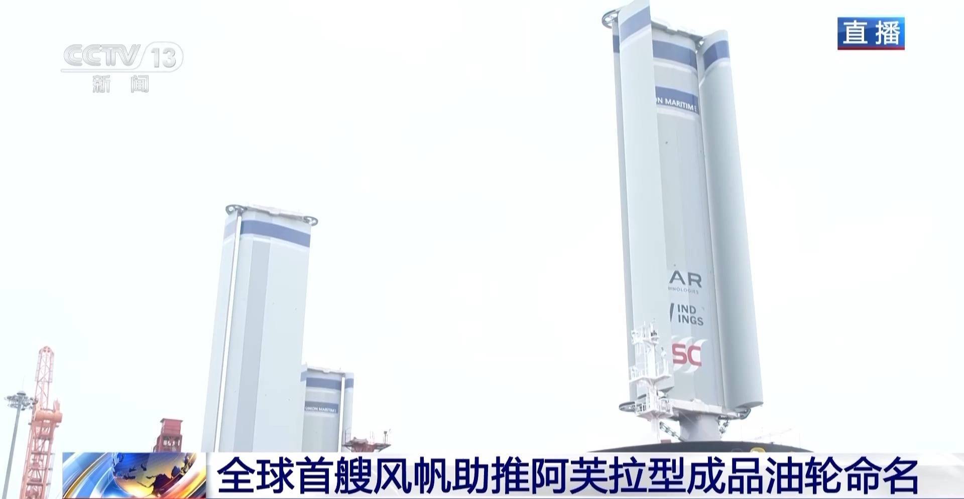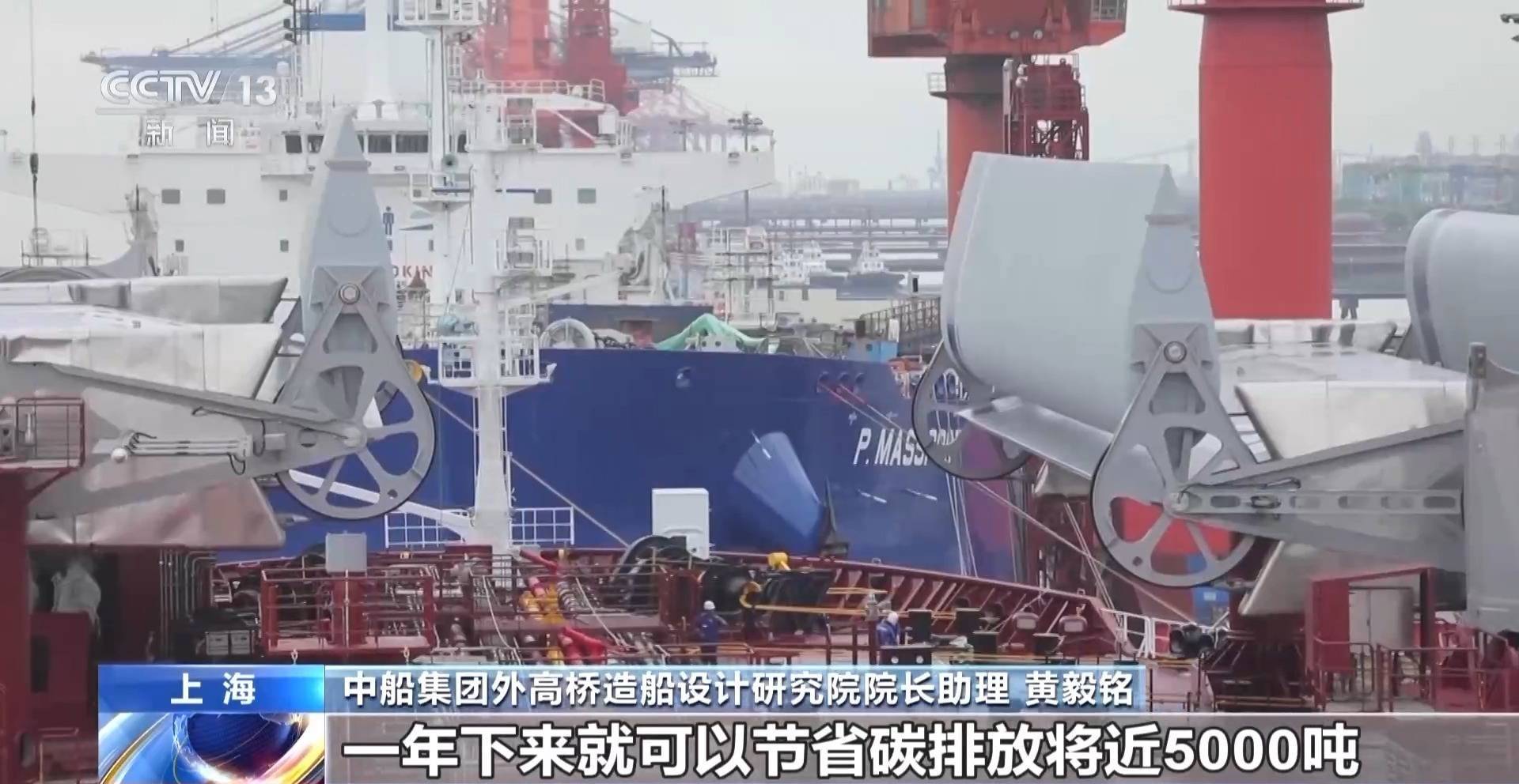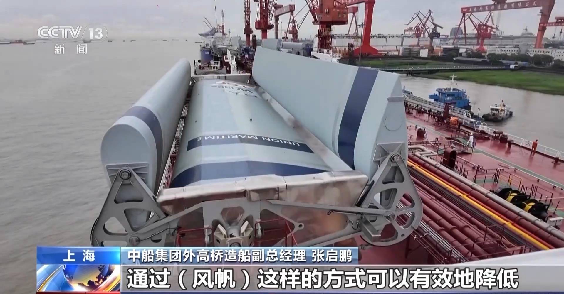 中船集团外高桥造船设计研究院院长助理 黄毅铭:根据实测结果,在20节风速的情况下,每天的燃油节省可达14.5吨,平均年节能达到了5%到12%,一年就可以节省碳排放近5000吨,这个成果是非常喜人的。不仅在油船上可以用,在散货船甚至是大型邮轮上都可以应用。