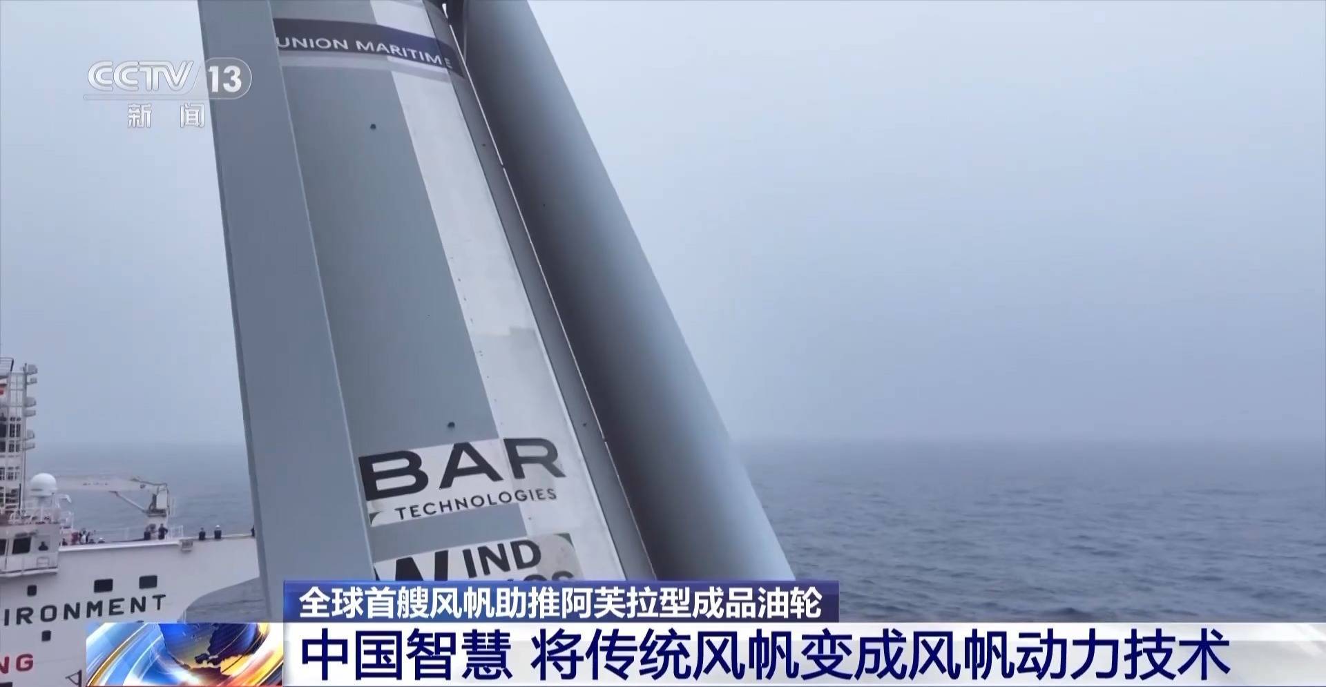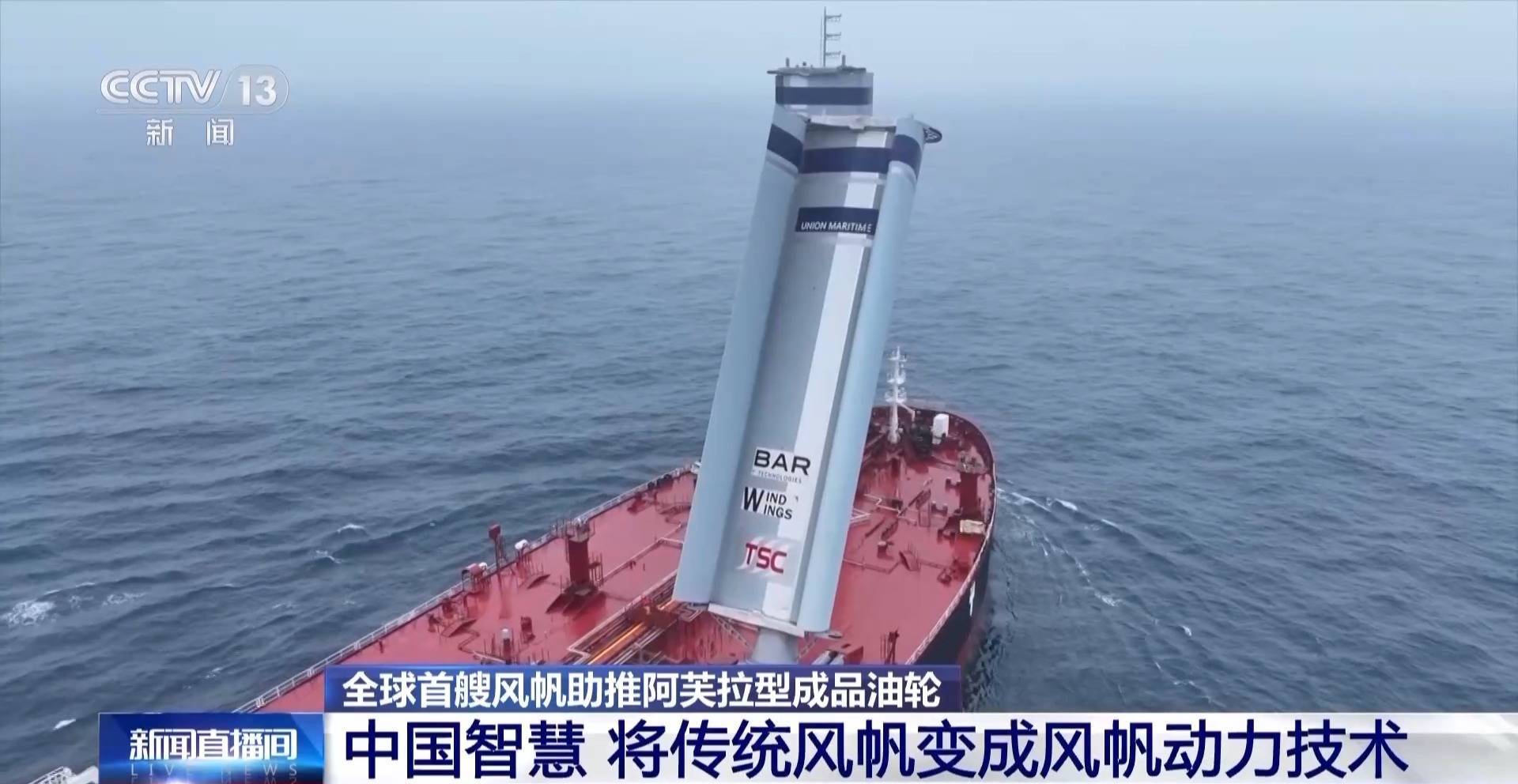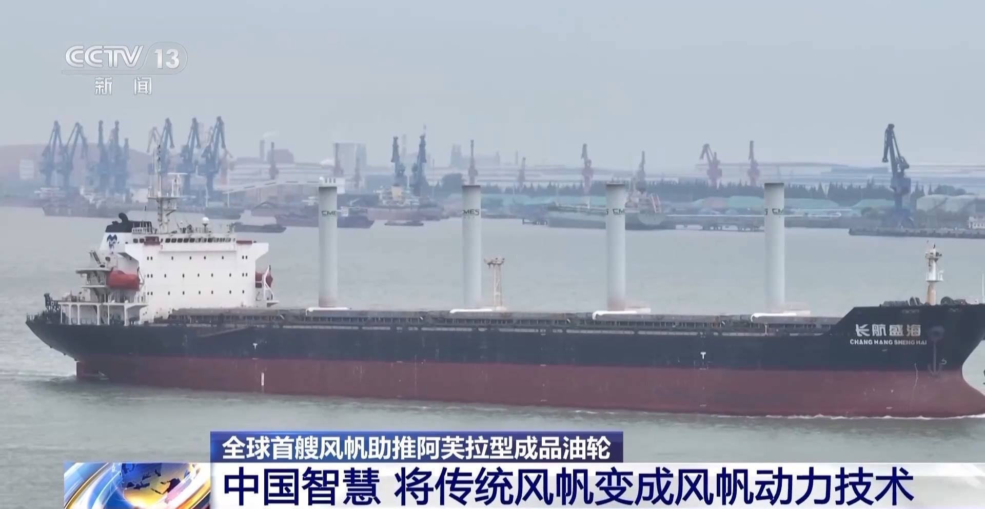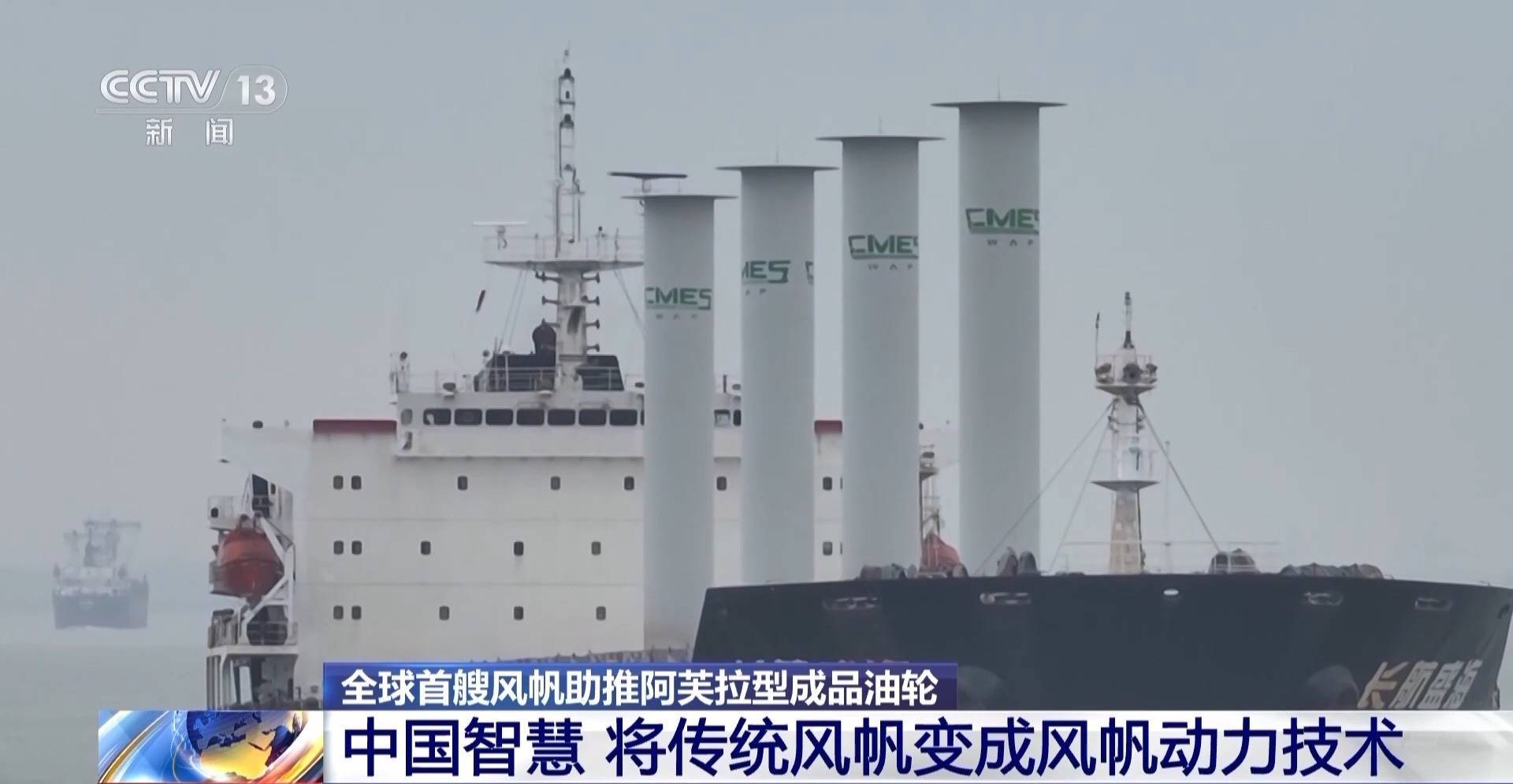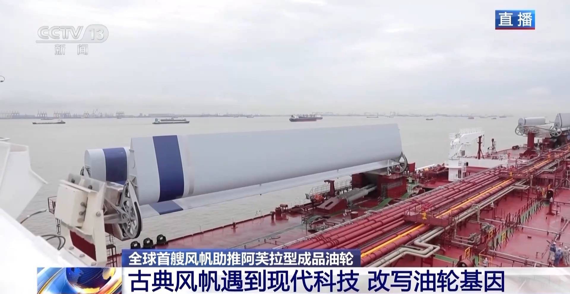 中船集团外高桥造船设计研究院院长助理 黄毅铭:根据实测结果,在20节风速的情况下,每天的燃油节省可达14.5吨,平均年节能达到了5%到12%,一年就可以节省碳排放近5000吨,这个成果是非常喜人的。不仅在油船上可以用,在散货船甚至是大型邮轮上都可以应用。