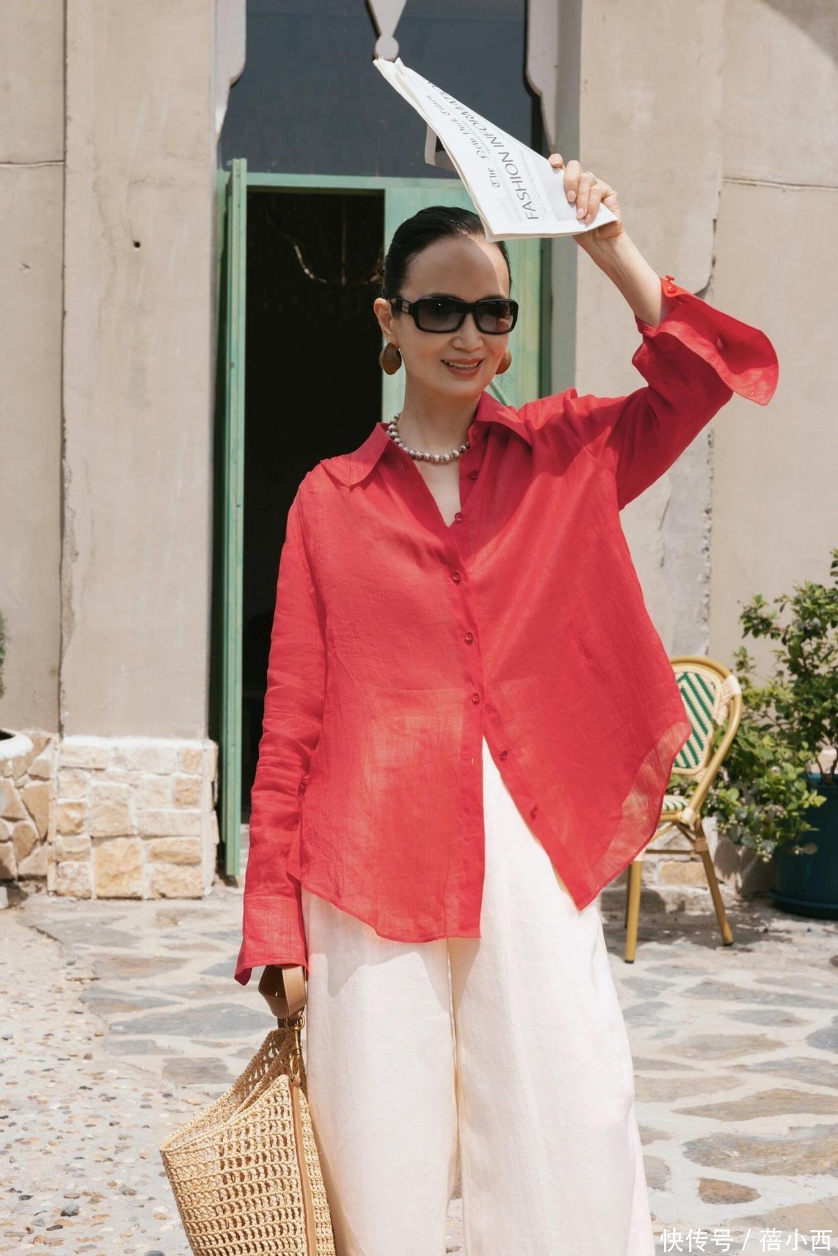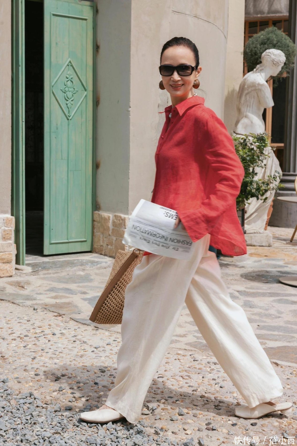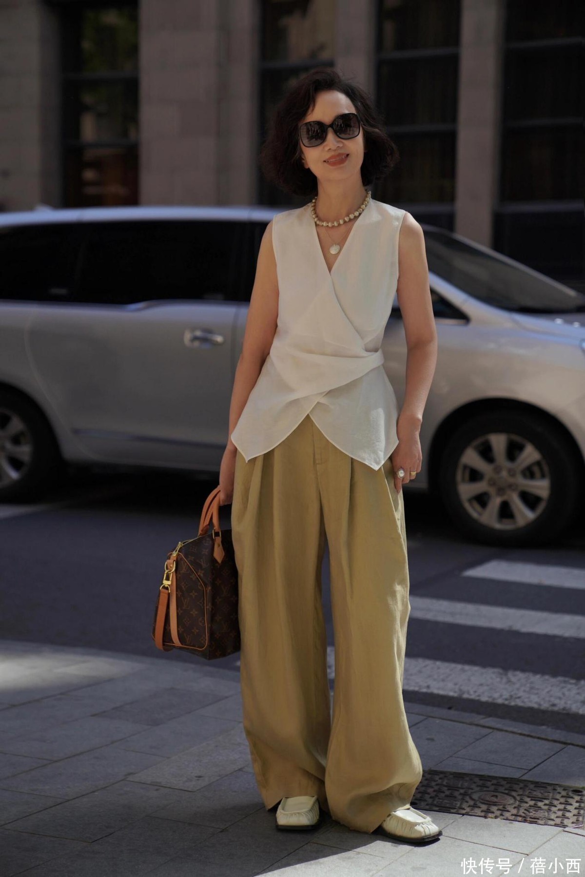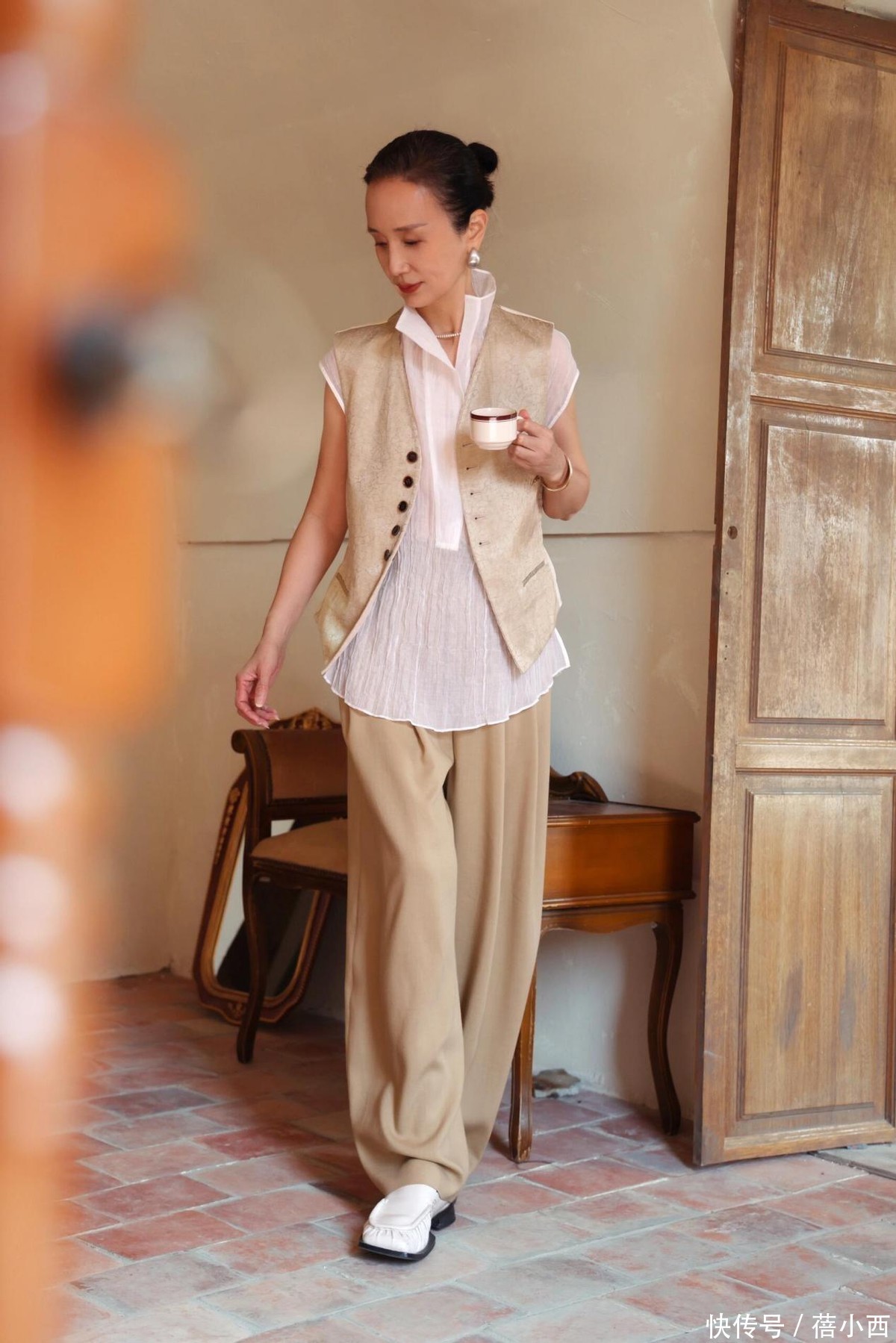 米色马甲叠穿白衬衫,层次感藏着巧思,宽松阔腿裤一搭,走路带风又舒服。40 + 这样穿,把 “优雅松弛” 焊在身上,日常又显贵,不用费力追赶潮流,岁月沉淀的美才最动人,照搬这套公式,轻松拿捏高级感。